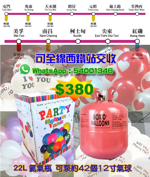 香港 氦氣 氫氣球 氫氣 輕氣 輕氣球 吹波氣 年宵 生日 場地 佈置 百日宴 蛋糕